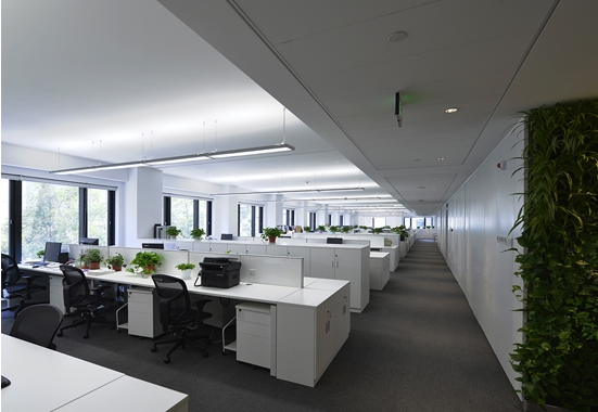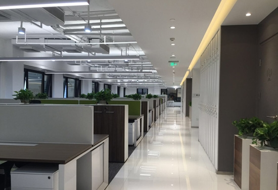 辦公區(qū)以“為員工提供舒適人性化的辦公環(huán)境”為基準(zhǔn),用白色作為主色調(diào),放大了空間感,再搭配大片的落地玻璃窗和時尚簡約的耐貝西照明線性吊燈,讓整個空間更加開闊通透。綠色的植被和盆栽裝飾,簡潔清新,又凈化了室內(nèi)空氣。營造出舒適、健康、富有人性的高品質(zhì)辦公環(huán)境。