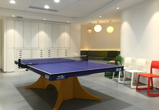 運動區(qū)購置了乒乓球桌,讓員工在工作之余可以好好放松一下眼睛和頸椎,柔和的彩色暖光吊燈和五彩的小方凳,使活動室充滿活力,墻角的絨布沙發(fā)和換衣櫥體驗了企業(yè)對員工用心的人文關(guān)懷。