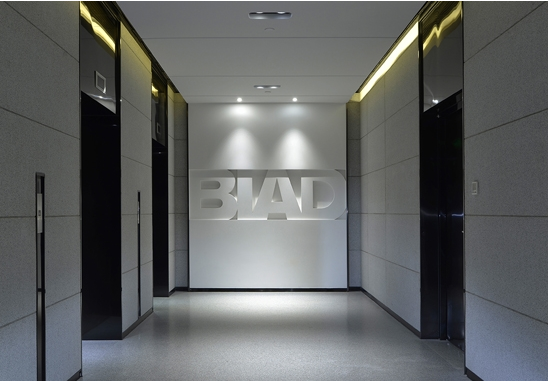 電梯間墻面和吊頂選用統(tǒng)一的大塊白色石材與深色金屬鑲嵌裝飾,簡潔大氣;空間正對的白色BIAD集團(tuán)LOGO,用燈光的映襯加強了視覺效果,讓整個空間時尚靈動而不失莊重優(yōu)雅。